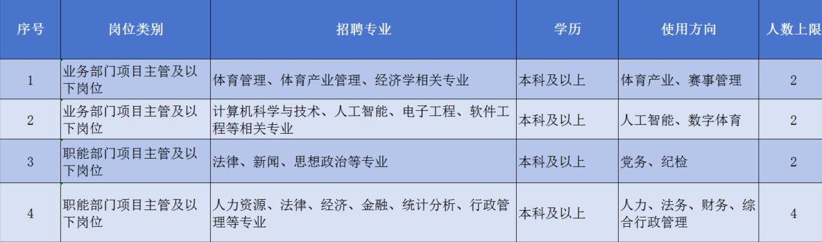 (2)体育管理及体育产业管理方向需具备深厚的体育产业知识,,,熟悉国内外体育赛事项目,,,对体育经济和市场规律有一定理解。。。有参与重大体育赛事活动或进行体育经济研究的经验者将被优先考虑。。